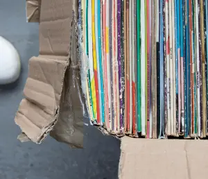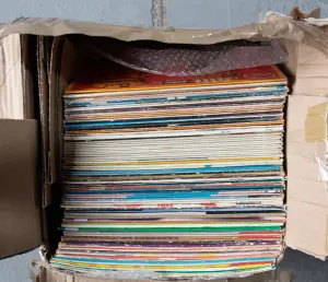 If there is still space in the box above or next to the records, fill this space completely with a material that is as bulky as possible. Bubble-wrap, old blankets, rolled-up cardboard and the like work very well. Crumpled newspaper, on the other hand, is not a good idea, it will be compressed by the weight of the records.