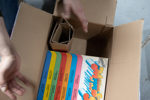 If your records don't quite fill the box, make sure they have plenty of padding. This can easily be done with other packing material - like this: